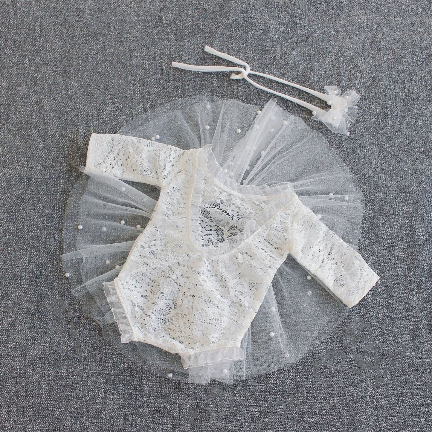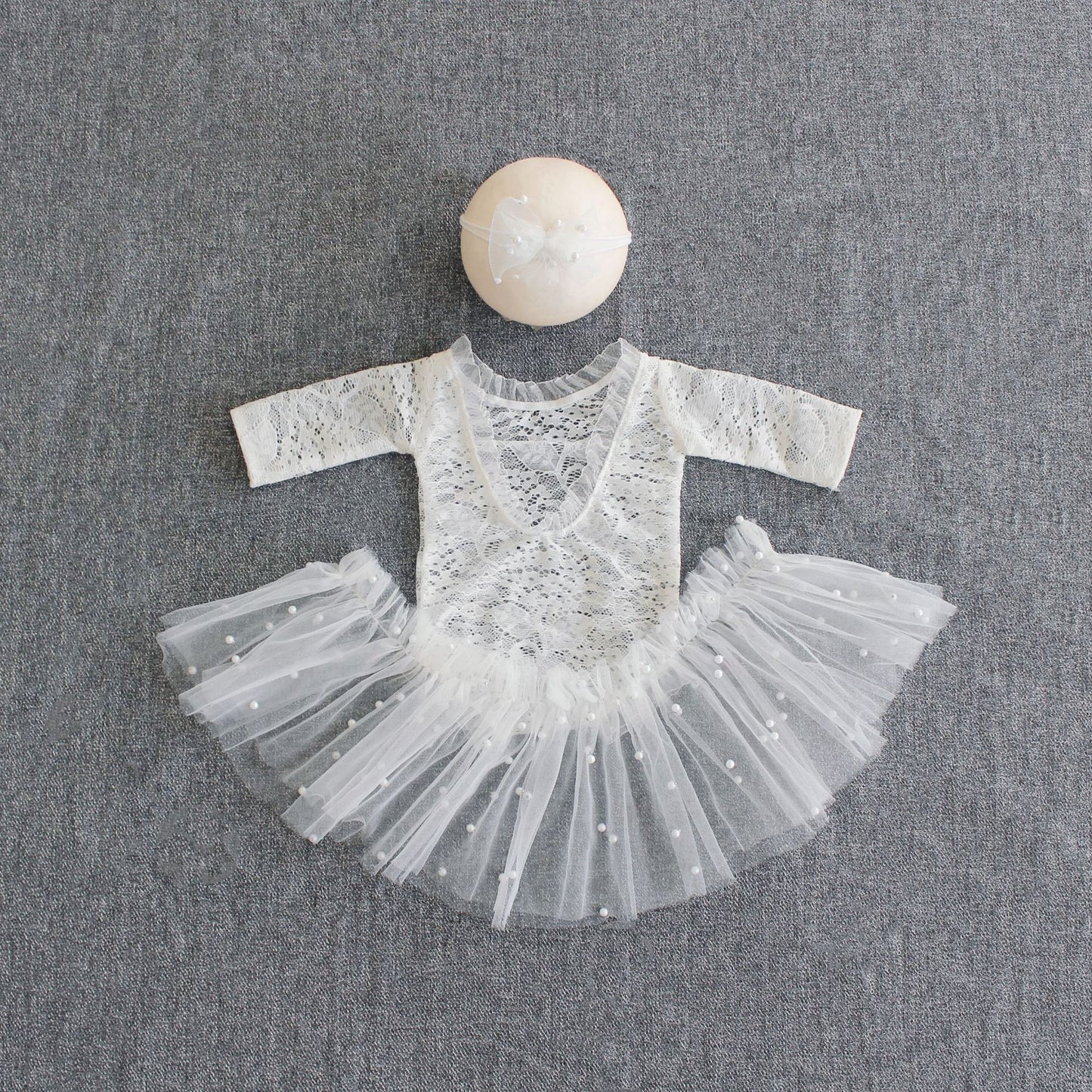 Avezano Baby Photo Shoot Tenues en dentelle blanche Robe perlée