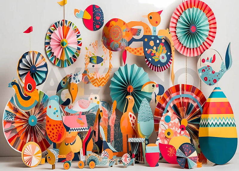 Fond de photographie de fête avec parapluie en papier huilé et ballon Avezano