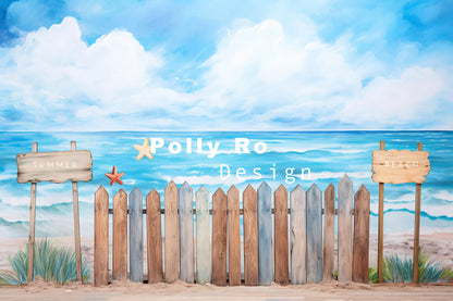 Toile de fond de photographie de la mer bleue d'Avezano en été conçue par Polly Ro Design