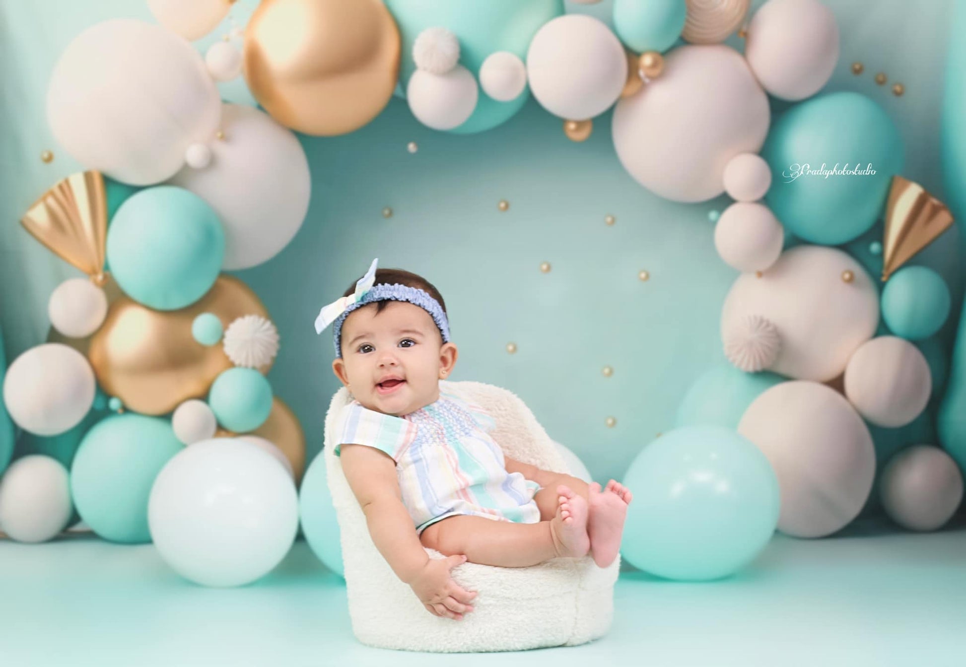 Arche de ballons à thème bleu Avezano pour photographie d'anniversaire