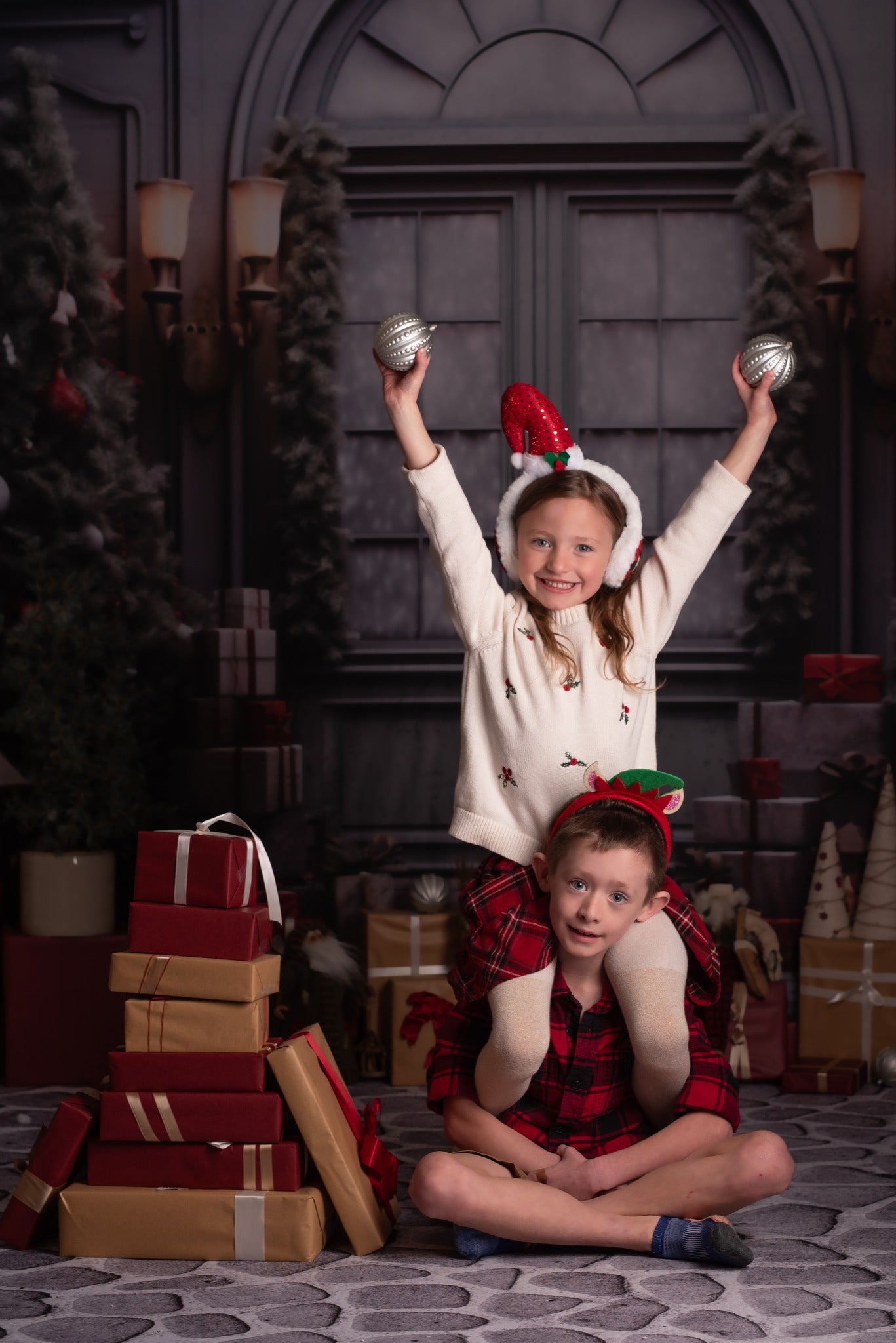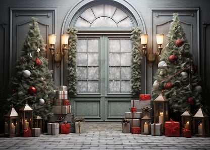Toile de fond pour photographie de décoration de porte de cadeau de Noël d'Avezano