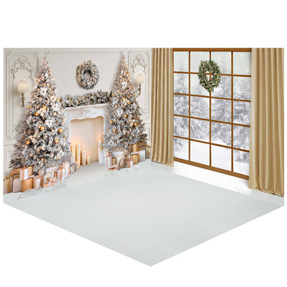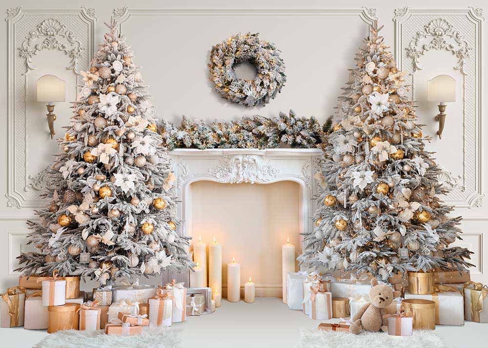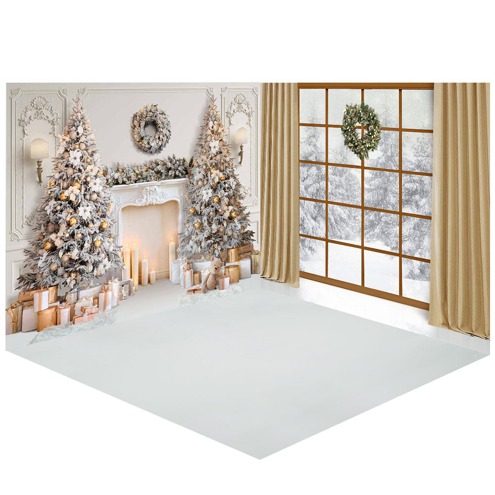 Toile de fond pour photographie de sapin de Noël et de cheminée d'Avezano