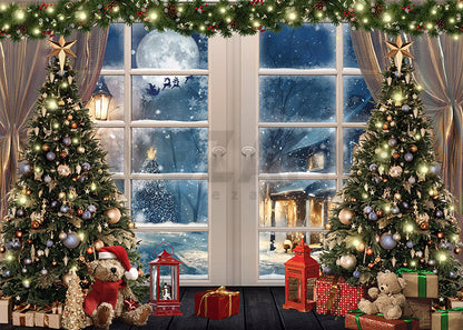 L'arbre de Noël d'Avezano présente une toile de fond photographique avec des fenêtres du sol au plafond