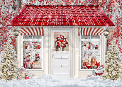 Toile de fond pour photographie de magasin de neige d'hiver de Noël d'Avezano
