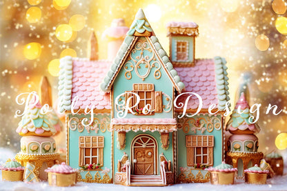 Toile de fond de photographie de la maison de bonbons colorée d'Avezano conçue par Polly Ro Design