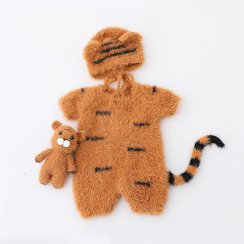 Avezano Ensemble de tenues de tigre pour nouveau-né, costumes de photographie, accessoires photo + jouets de tigre