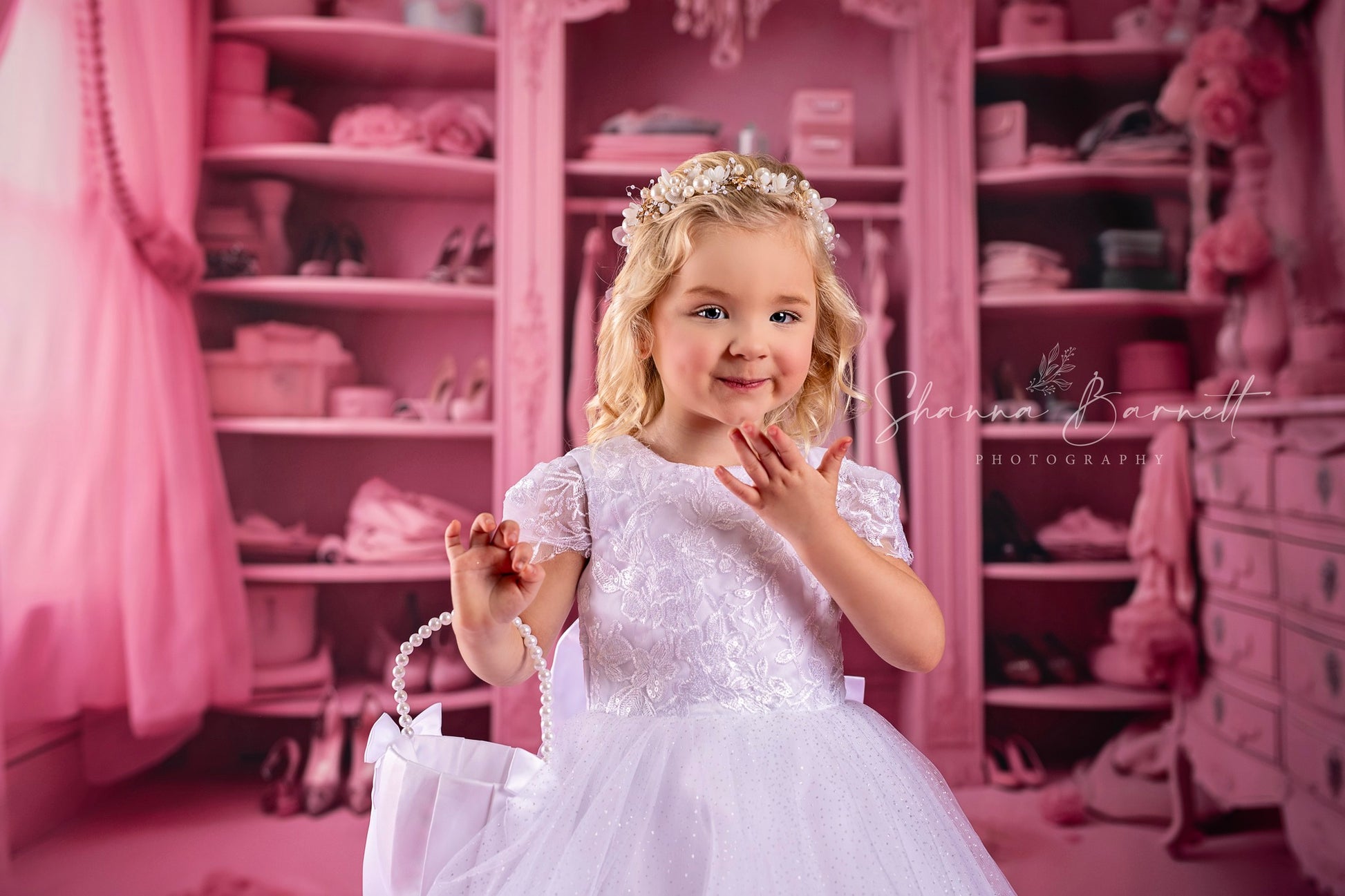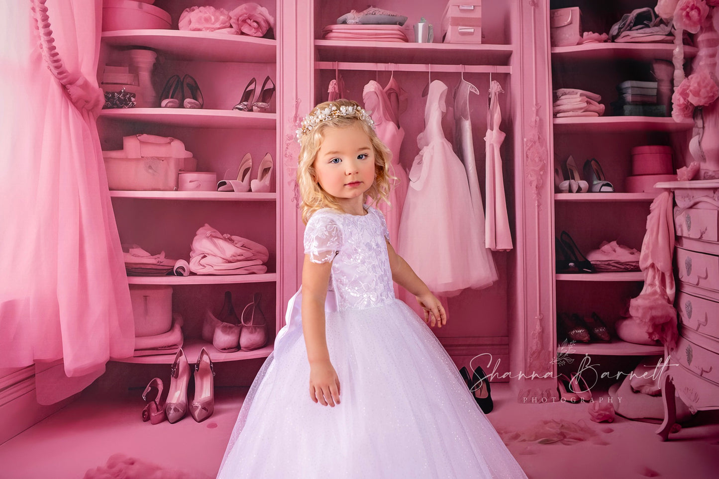 Photographie de fond de robe de chambre Barbie rose Avezano