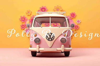Toile de fond pour photographie de fête d'anniversaire de voiture rose d'Avezano conçue par Polly Ro Design