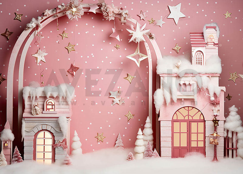 Toile de fond pour photographie d'anniversaire de fête de Noël au chalet rose d'Avezano