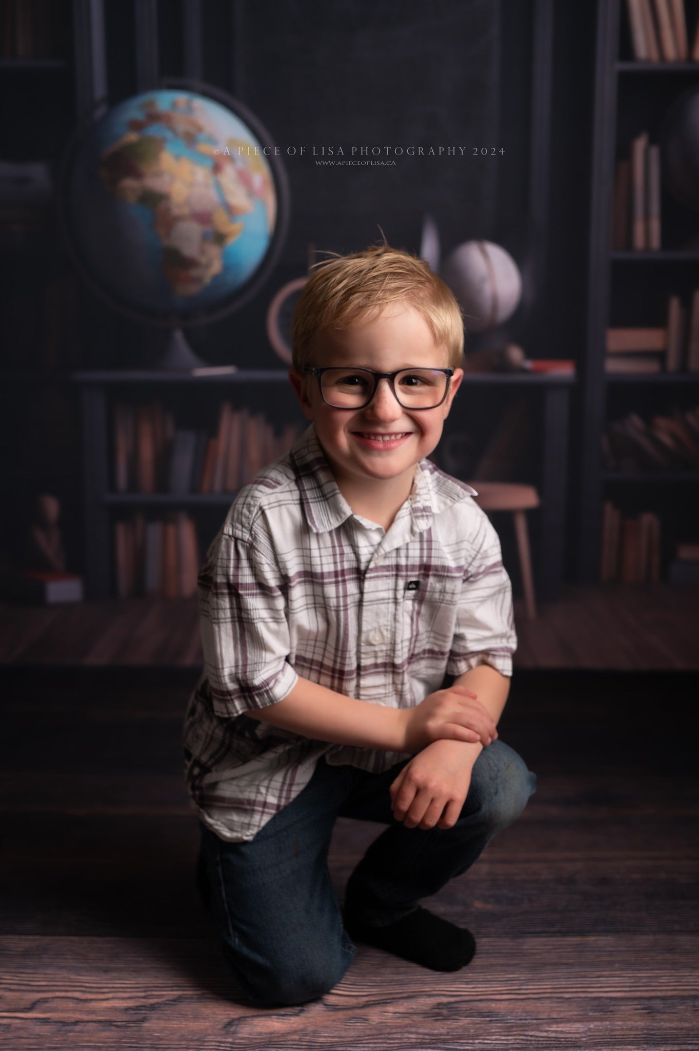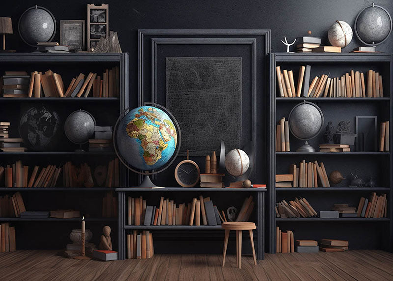 Toile de fond pour photographie de globe de bibliothèque rétro Avezano pour la rentrée scolaire