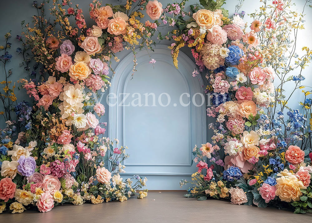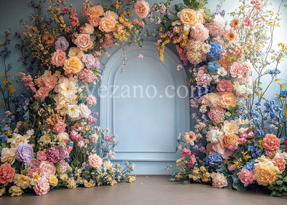 Avezano Spring Fleurs colorées et toile de fond de photographie murale bleue