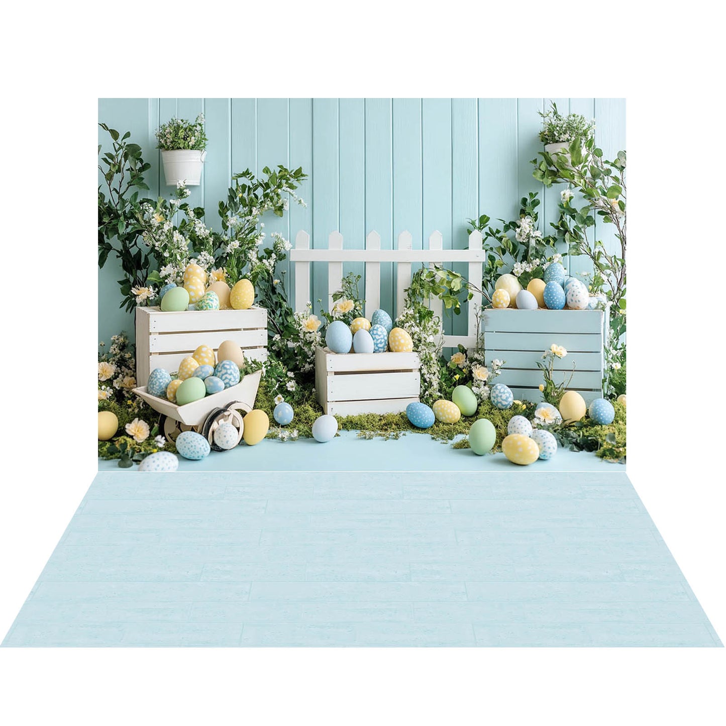 Ensemble de 2 toiles de fond à thème bleu œuf de Pâques de printemps Avezano