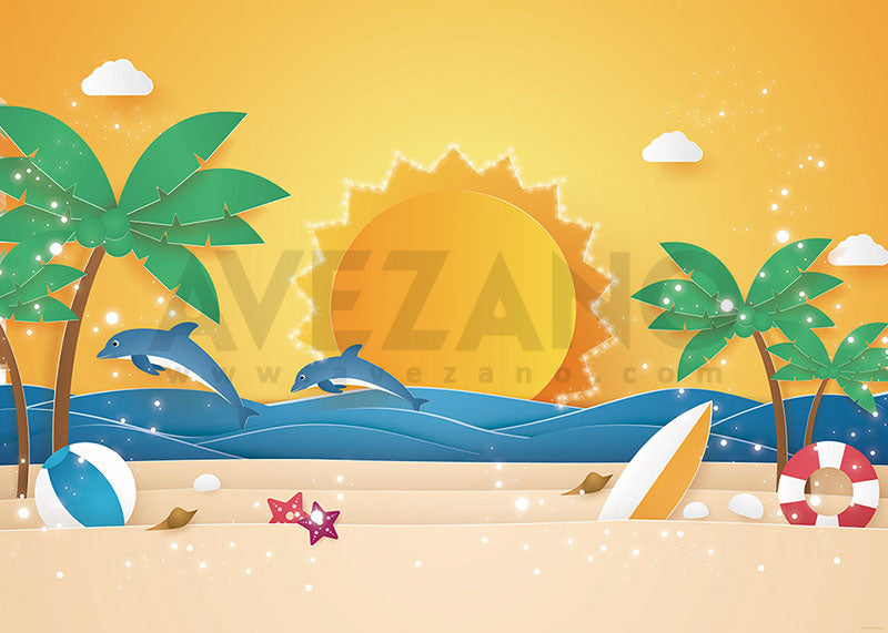 Toile de fond pour photographie de plage ensoleillée d'été d'Avezano