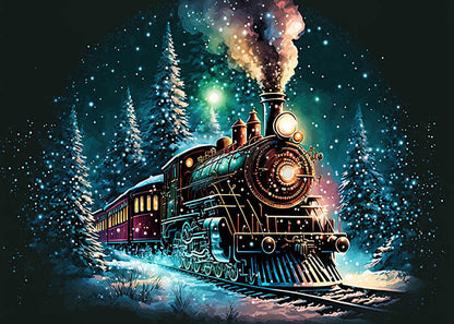 Photographie du train d'Avezano dans une forêt profonde et sous la neige