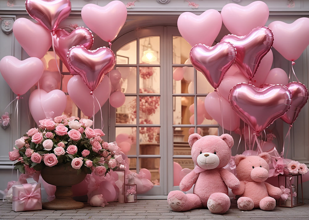 Toile de fond pour photographie de ballons et d'ours d'amour pour la Saint-Valentin Avezano
