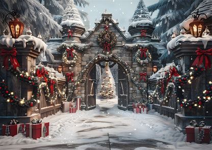 Toile de fond pour photographie de décorations de Noël sur une porte murale blanche d'Avezano