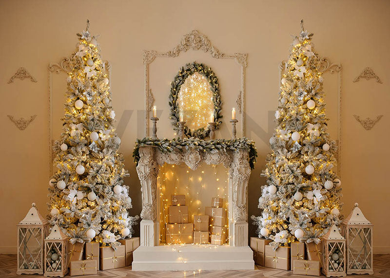 Toile de fond pour photographie de cheminée d'hiver de Noël d'Avezano