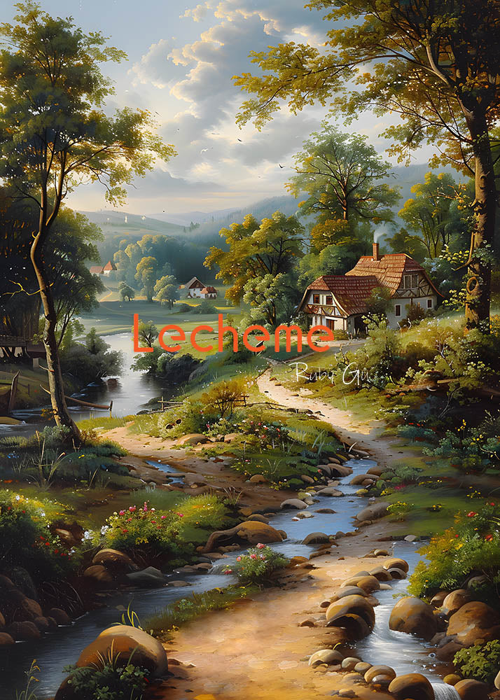 Paysage rural du ruisseau Avezano, toile de fond pour photographie de halètement à l'huile par Lecheme Ruby Gu