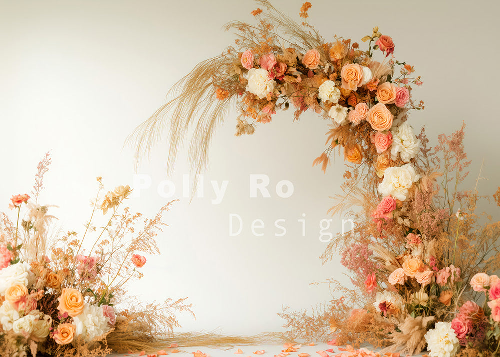 Toile de fond pour photographie de fleurs roses d'architecture rétro de printemps d'Avezano