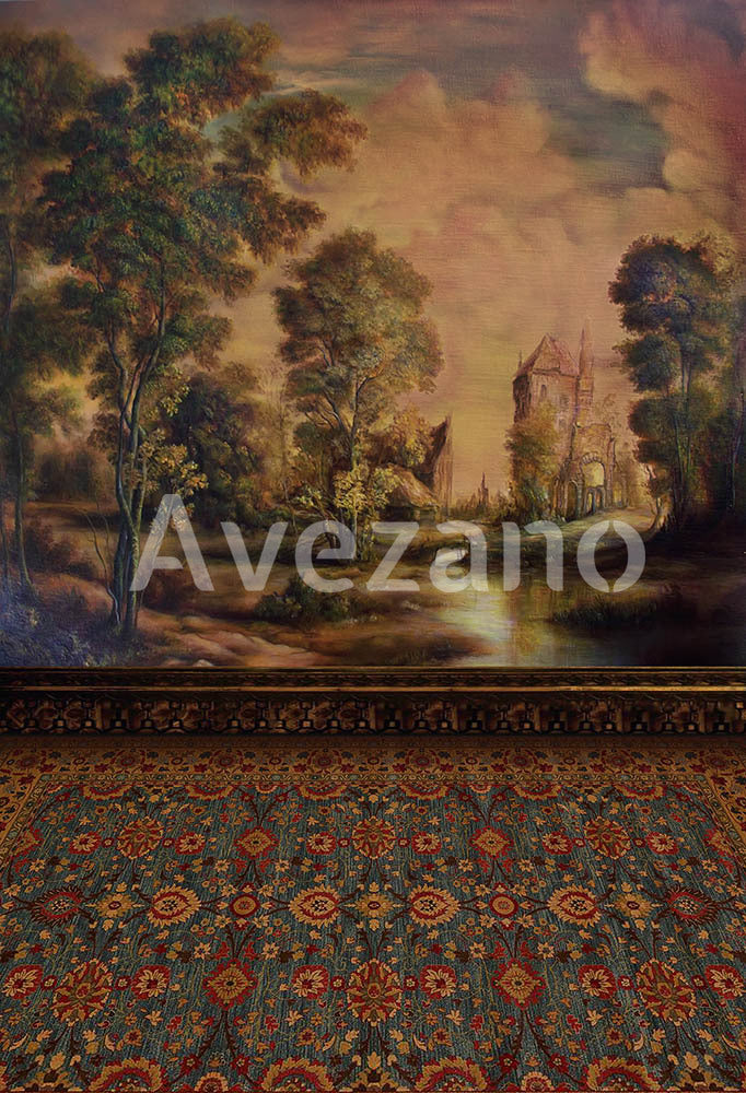 Toile de fond pour photographie de peinture à l'huile du ruisseau Avezano et du ciel bleu