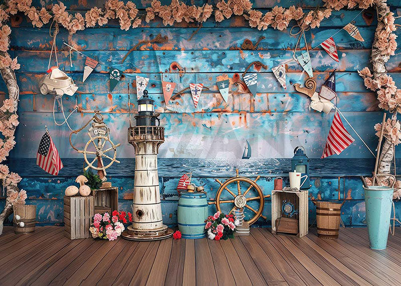 Arrière-plan de photographie sur le thème du phare bleu marine d'Avezano