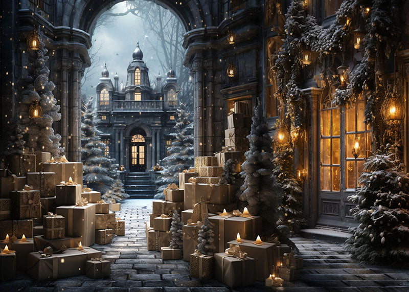 Toile de fond pour photographie de décoration de maison de Noël d'Avezano
