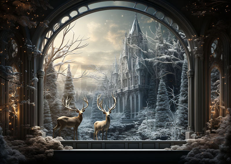 Photographie d'un élan de Noël dans le château d'hiver d'Avezano