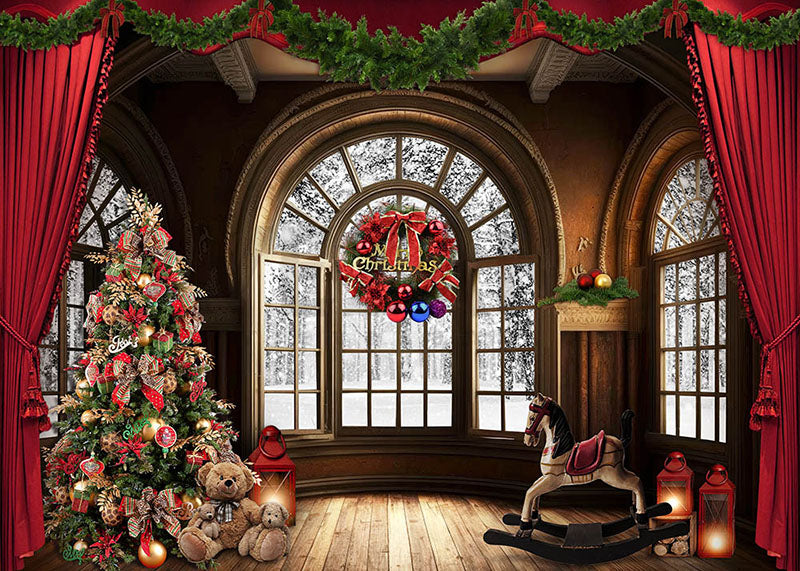 Toile de fond pour photographie de rideau de Noël d'Avezano