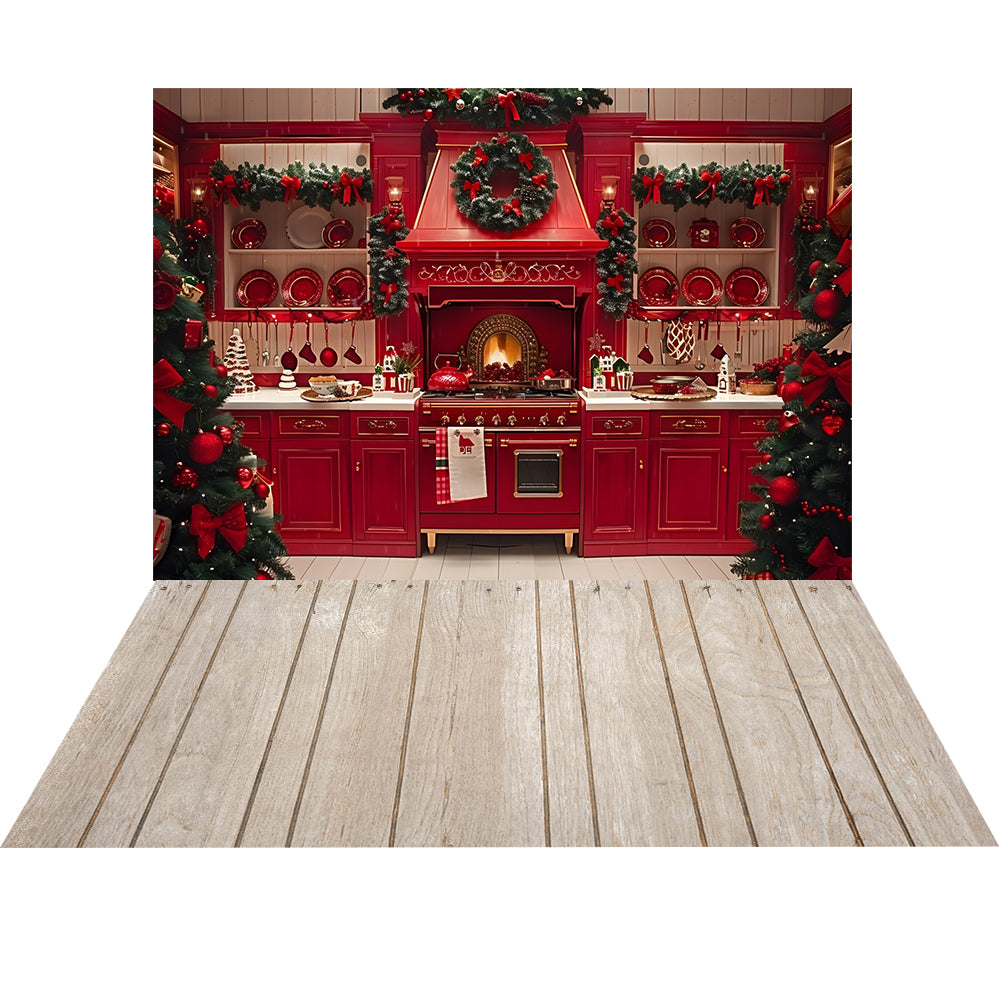 Ensemble de 2 toiles de fond avec sapin de Noël et cuisine rouge d'Avezano