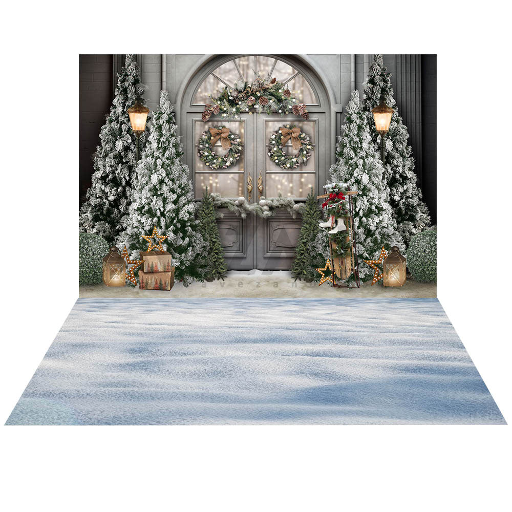 Ensemble de 2 toiles de fond avec sapin et couronne de Noël d'Avezano