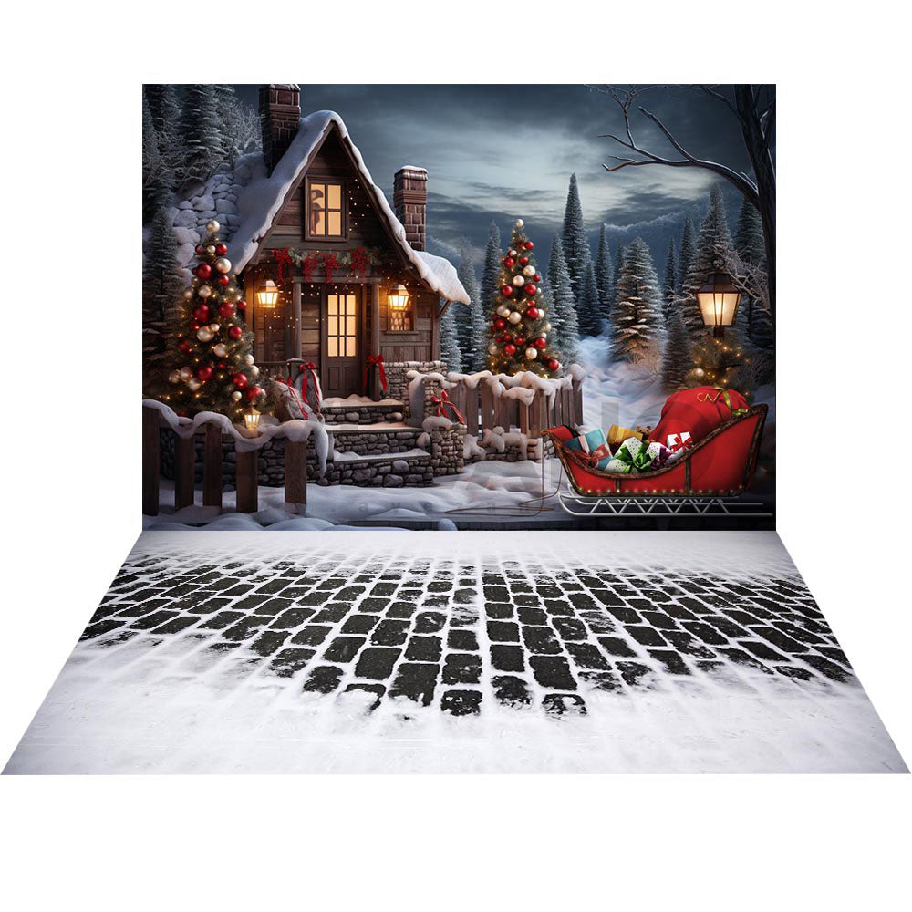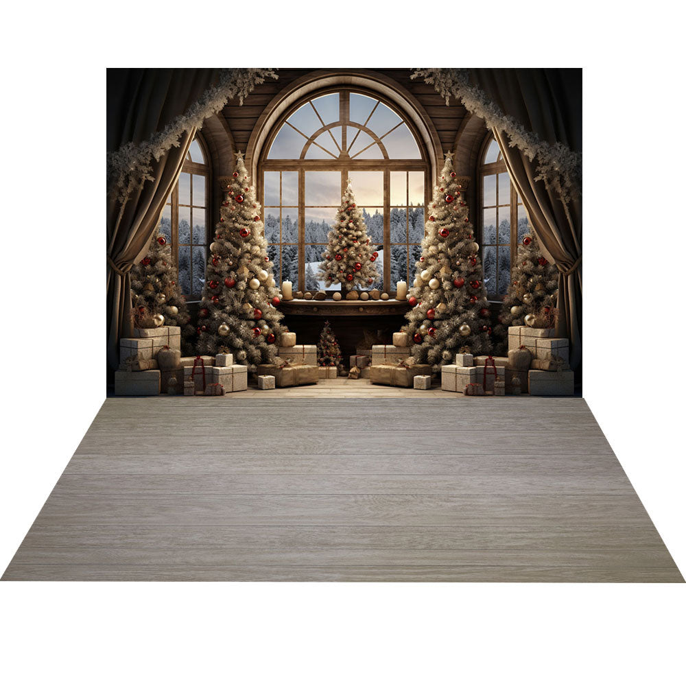 Avezano Arbre de Noël Cadeau Chariot en bois Neige Ensemble 2 pièces Toile de fond