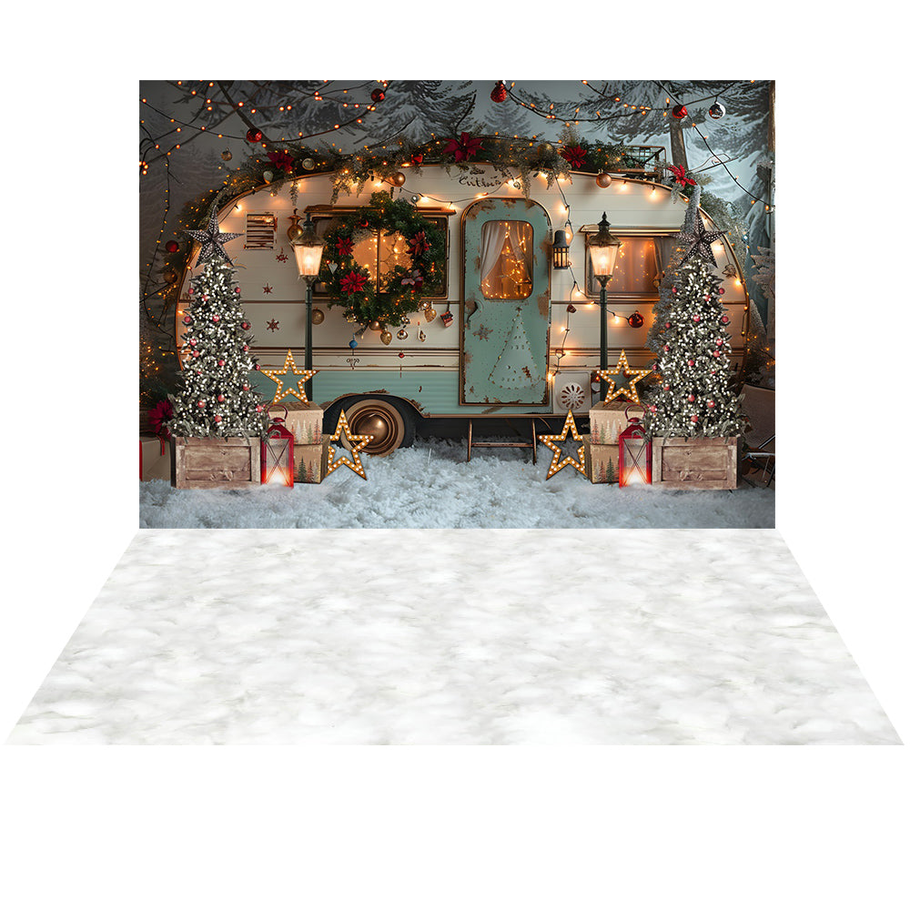 Ensemble de 2 toiles de fond avec sapin de Noël et camping-car vintage d'Avezano