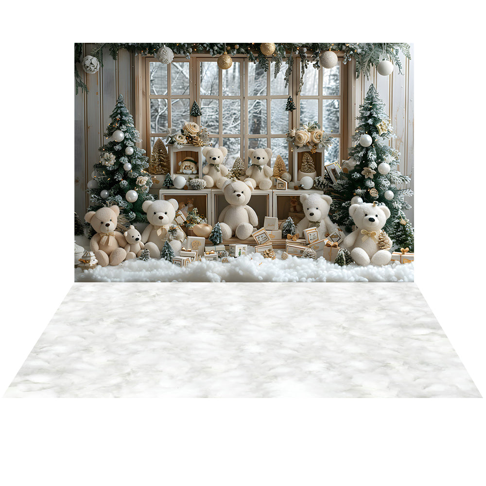 Ensemble de 2 toiles de fond représentant un arbre de Noël et un ours blanc sur le rebord de la fenêtre d'Avezano