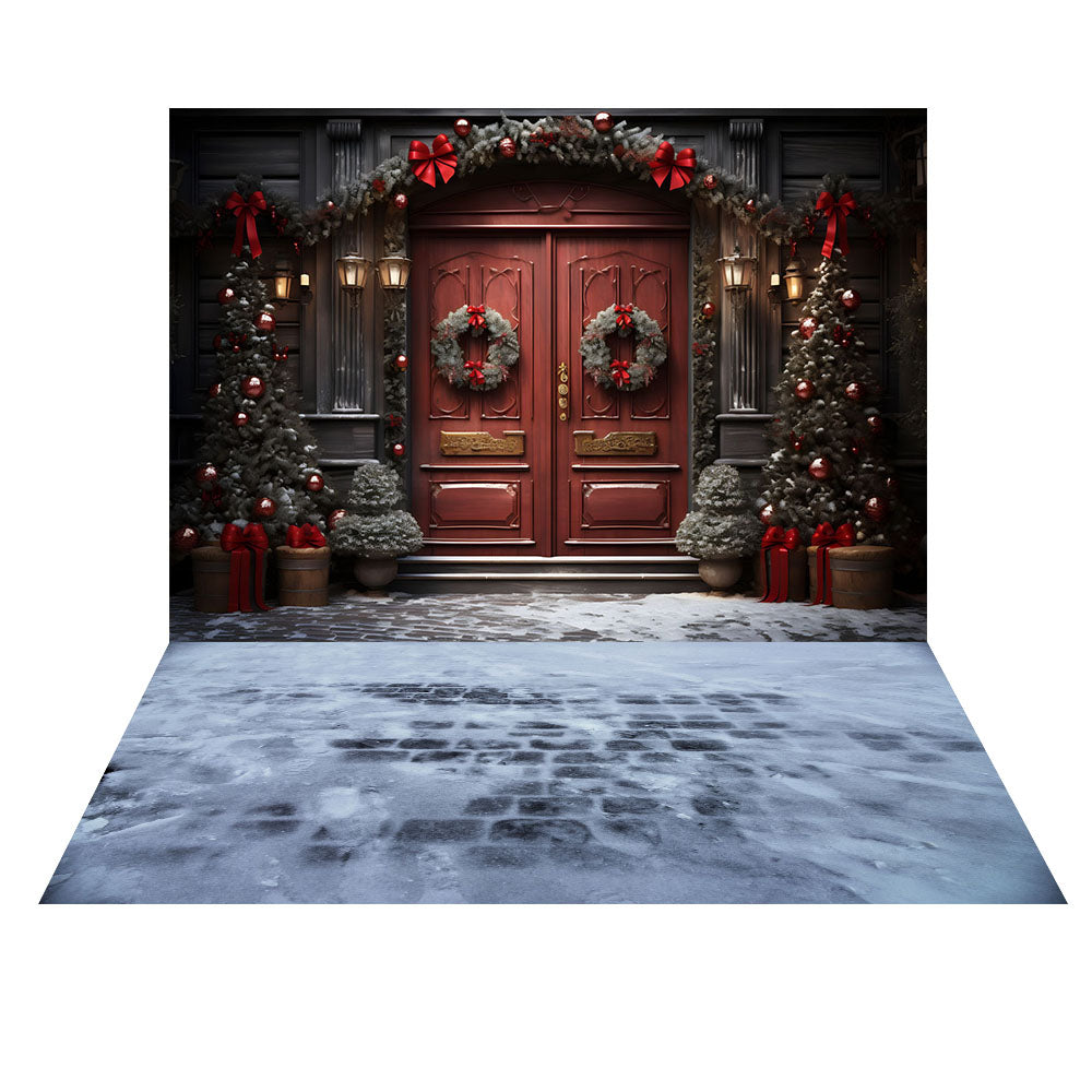 Couronnes et nœuds de Noël Avezano, ensemble de 2 pièces, toile de fond