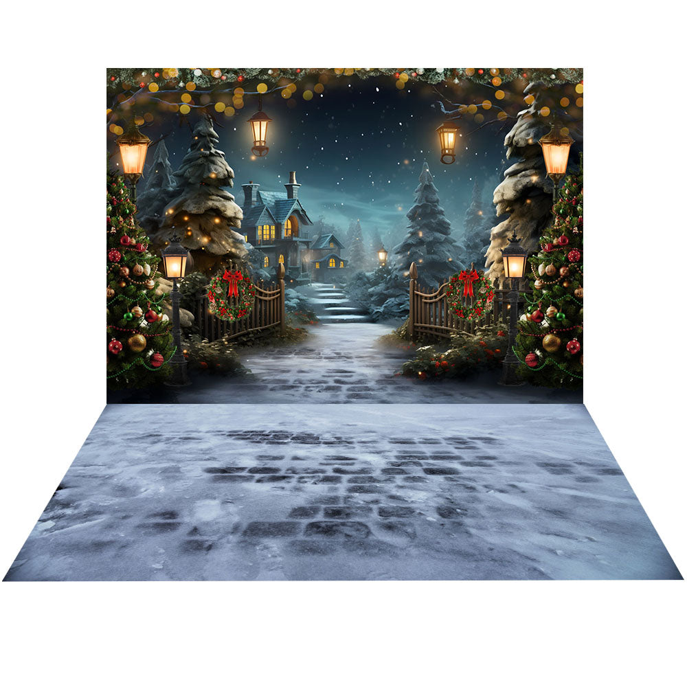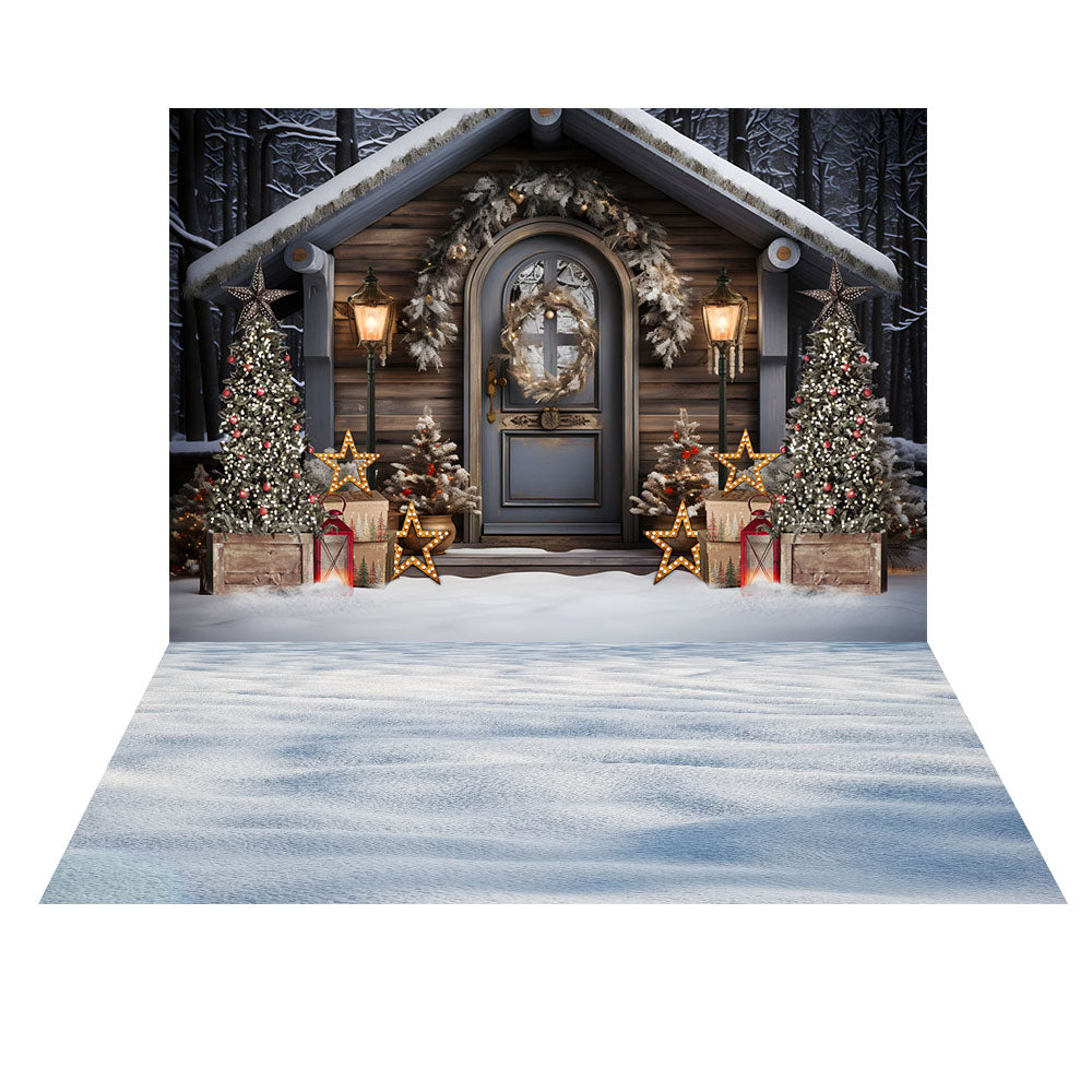 Ensemble de 2 toiles de fond avec sapin et maison de Noël d'Avezano