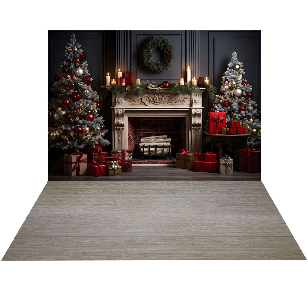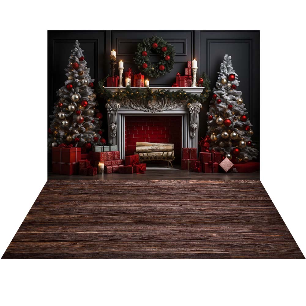 Ensemble de 2 toiles de fond avec sapin de Noël et cheminée rouge d'Avezano