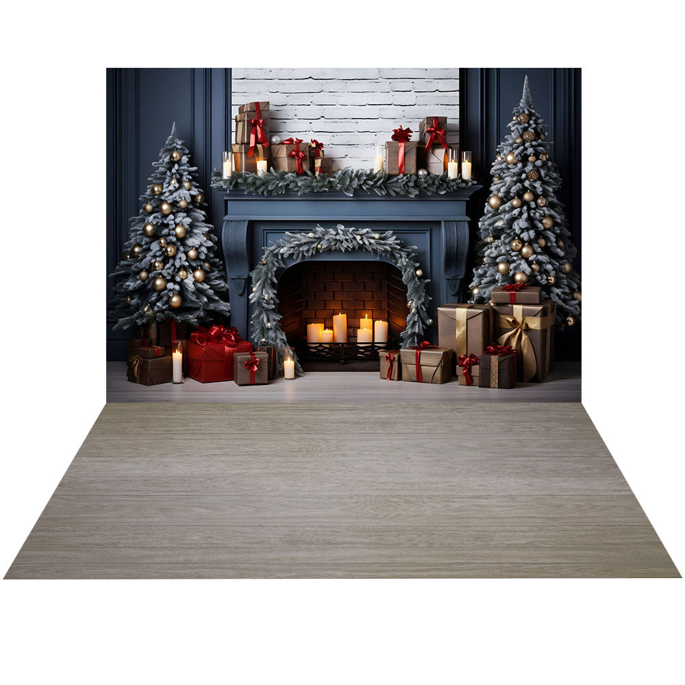 Ensemble de 2 toiles de fond avec sapin de Noël et cheminée bleus d'Avezano