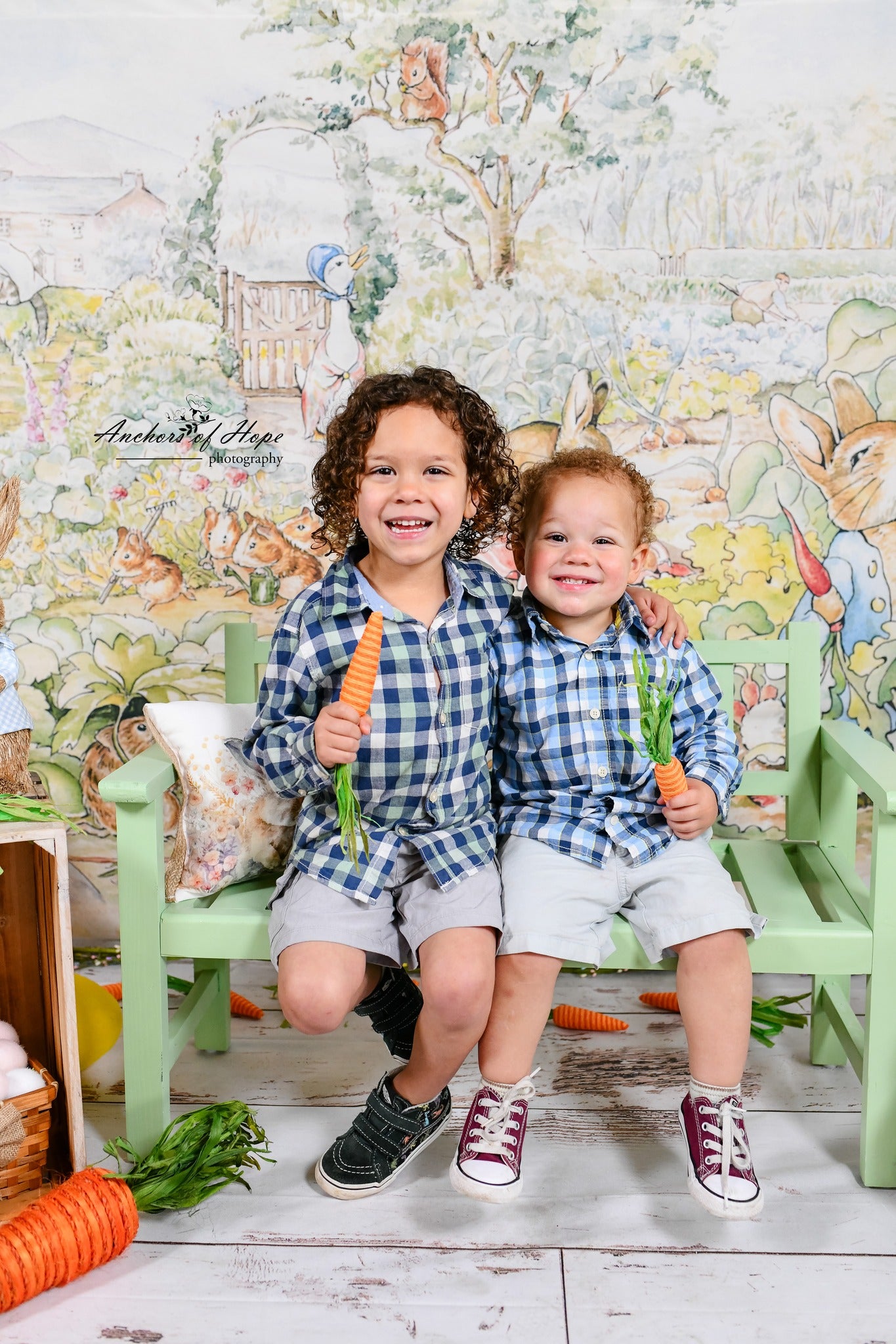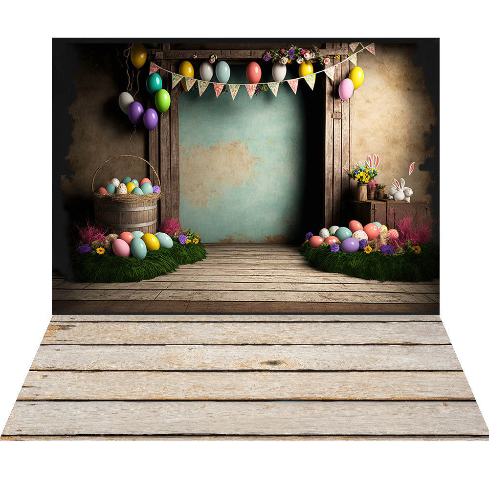 Avezano Rabbit Rail 2 pièces Ensemble de toile de fond de printemps de Pâques