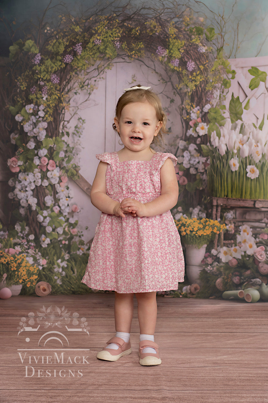 Toile de fond de 2 pièces avec mur rose et fleurs au printemps d'Avezano
