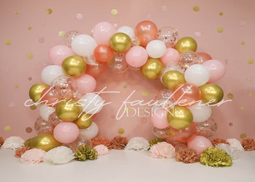 Ballons roses et dorés Avezano One Cakesmash Toile de fond pour la photographie conçue par Stefany Figueroa