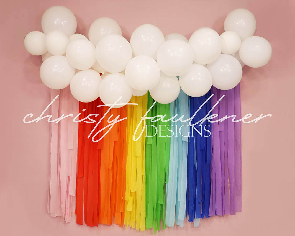 Toile de fond murale à boules arc-en-ciel d'Avezano pour la photographie conçue par Christy Faulkner