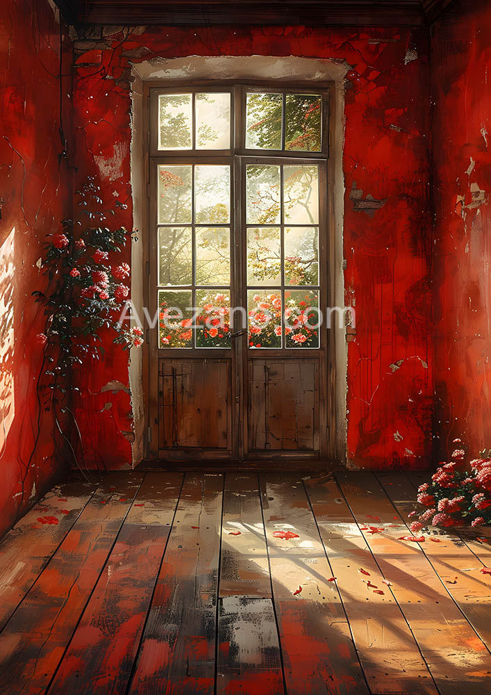 Toile de fond pour photographie de la salle fleurie et des murs peints d'Avezano