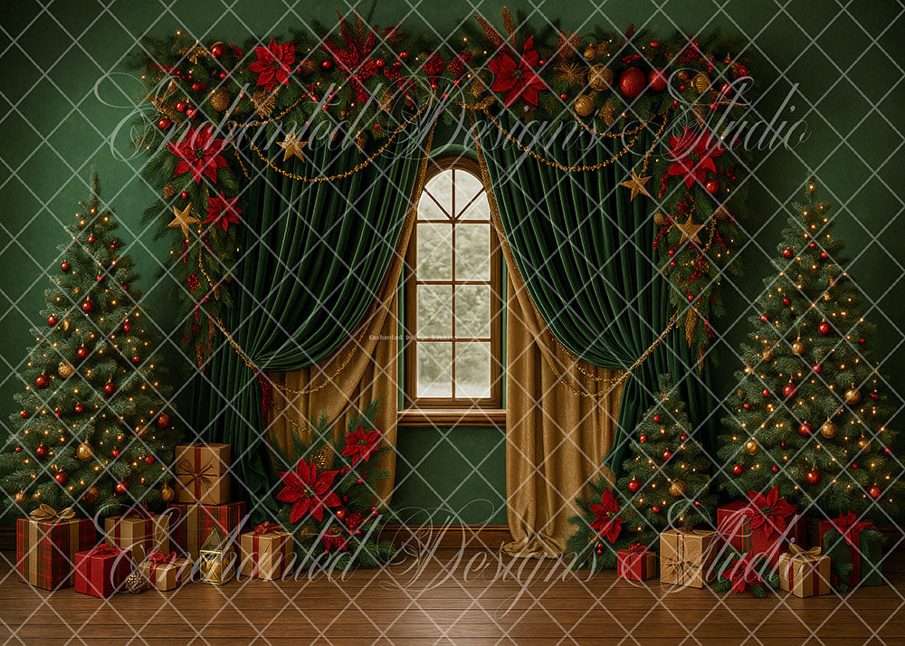 Toile de fond pour photographie de sapin de Noël blanc et de cadeaux d'Avezano