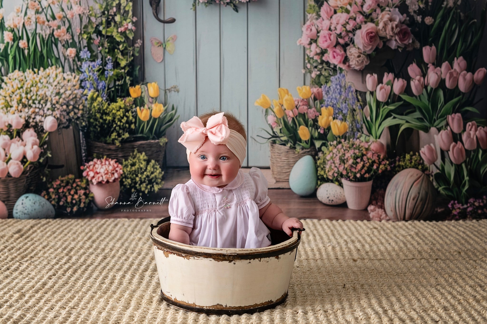 Arches de Pâques d'Avezano recouvertes de fleurs, toile de fond pour photographie conçue par Polly Ro Design