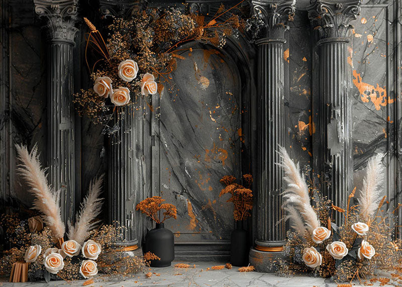 Toile de fond pour photographie de roses bohèmes et de rideaux noirs d'Avezano