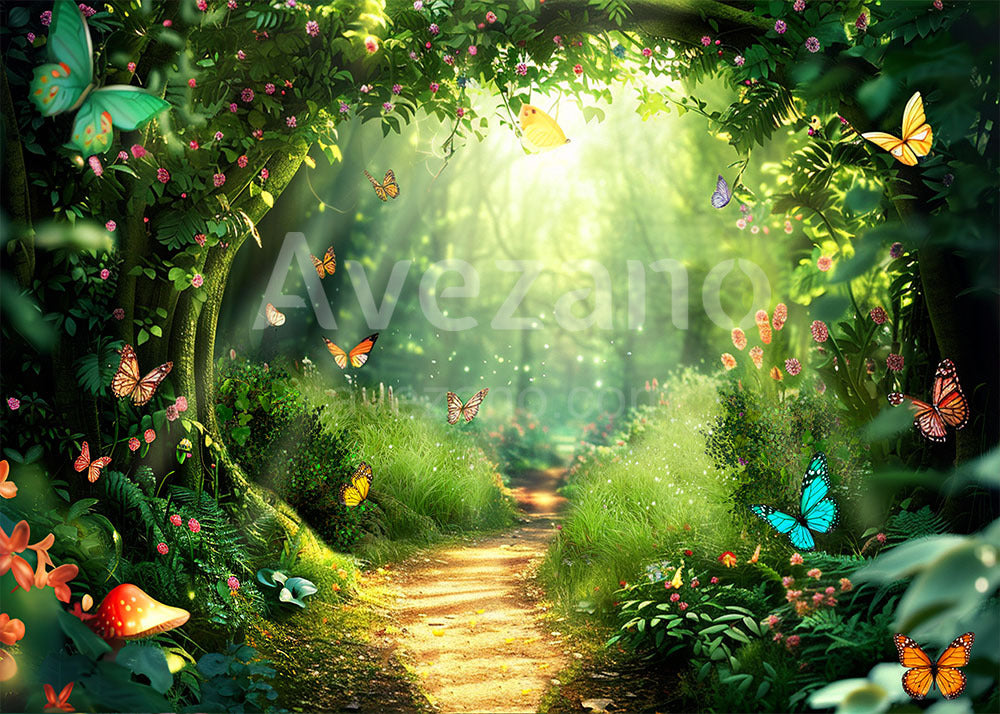 Toile de fond pour photographie de la maison aux champignons magiques du printemps d'Avezano
