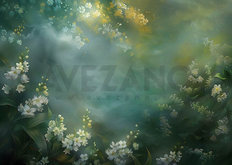 Avezano Fleurs blanches et feuilles vertes Toile de fond pour photographie artistique de la fête des mères