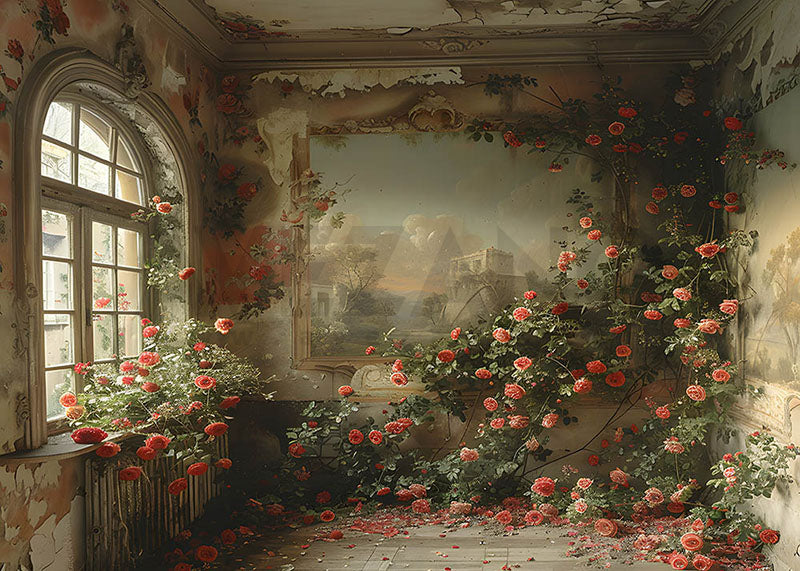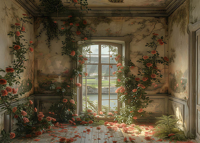 Toile de fond pour photographie d'intérieur de printemps d'Avezano recouverte de vignes roses