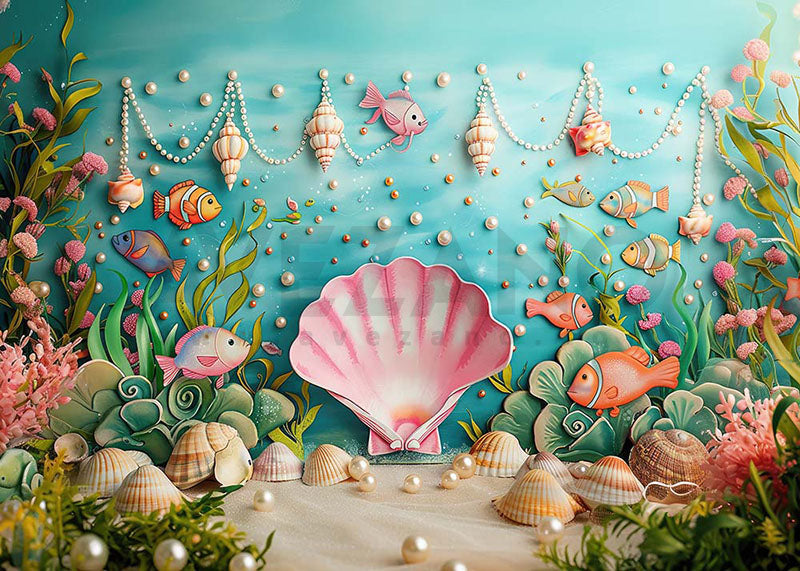 Fond de photographie de gâteau smash sur le thème de la sirène d'été d'Avezano