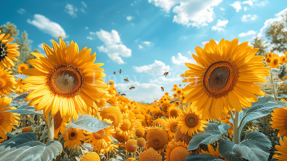 Tournesols d'été d'Avezano et toile de fond de ciel bleu conçue par Danyelle Pinnington